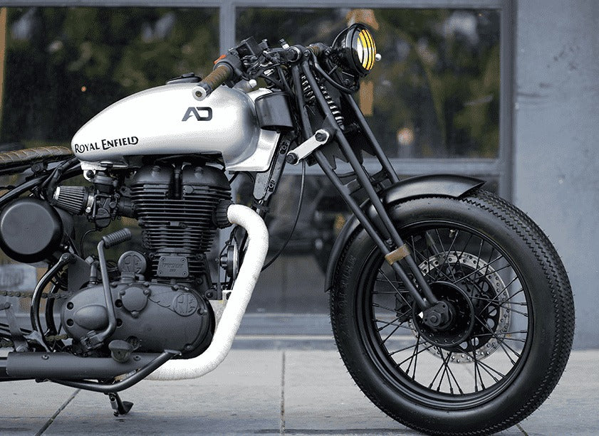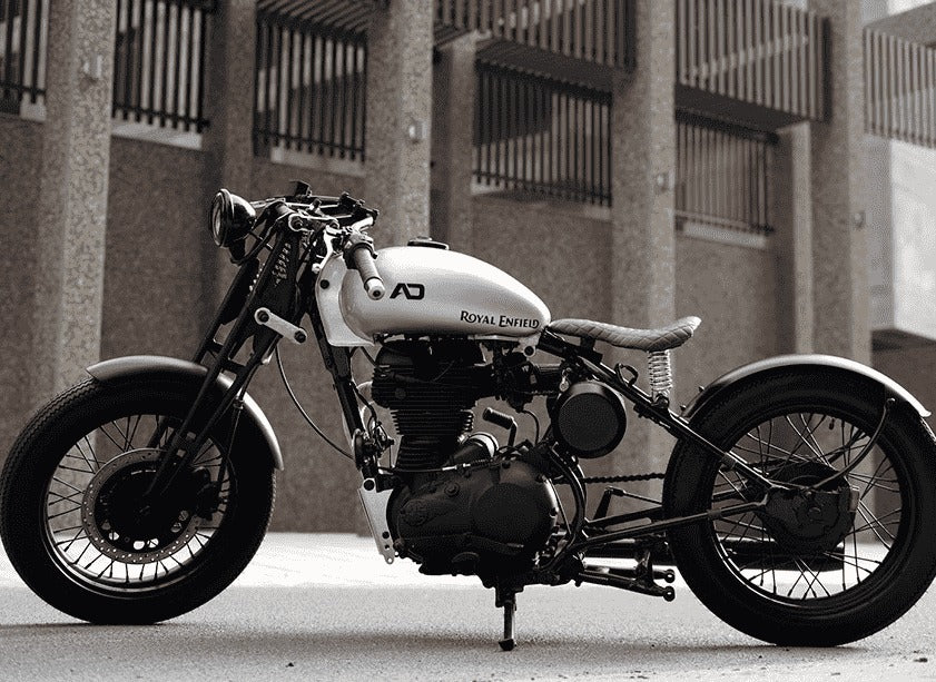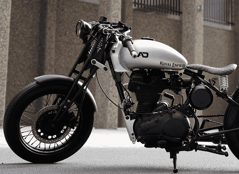 Tribal 350 is a vintage style bobber with a hard tail frame and bobbed rear fender. Custom mounted single round head light with grinder front and crome touch given with silver and matt black colour gives a unique look to bike vintage old school. 17 inch tyre use best, chequered custom seat and roaring exhaust.